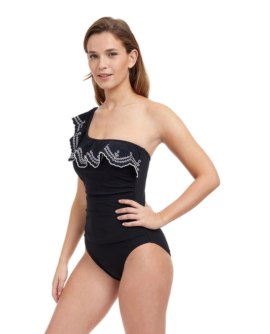 GOTTEX Lola Ruffle One Shoulder One Piece - Black & White