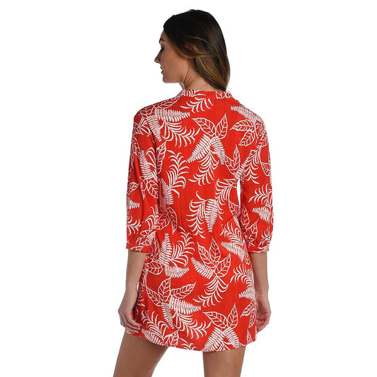LA BLANCA V-Neck Tunic - Cherry Tropical Tapestry