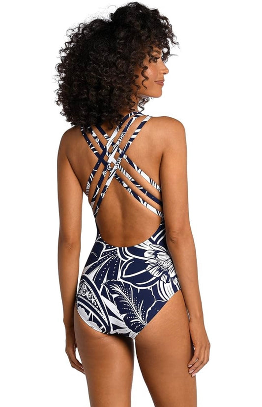 LA BLANCA V Neck Maillot One Piece - Indigo