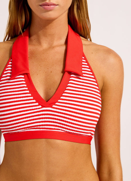SEAFOLLY Clubhouse Halter With Collar Bikini Top - Flame