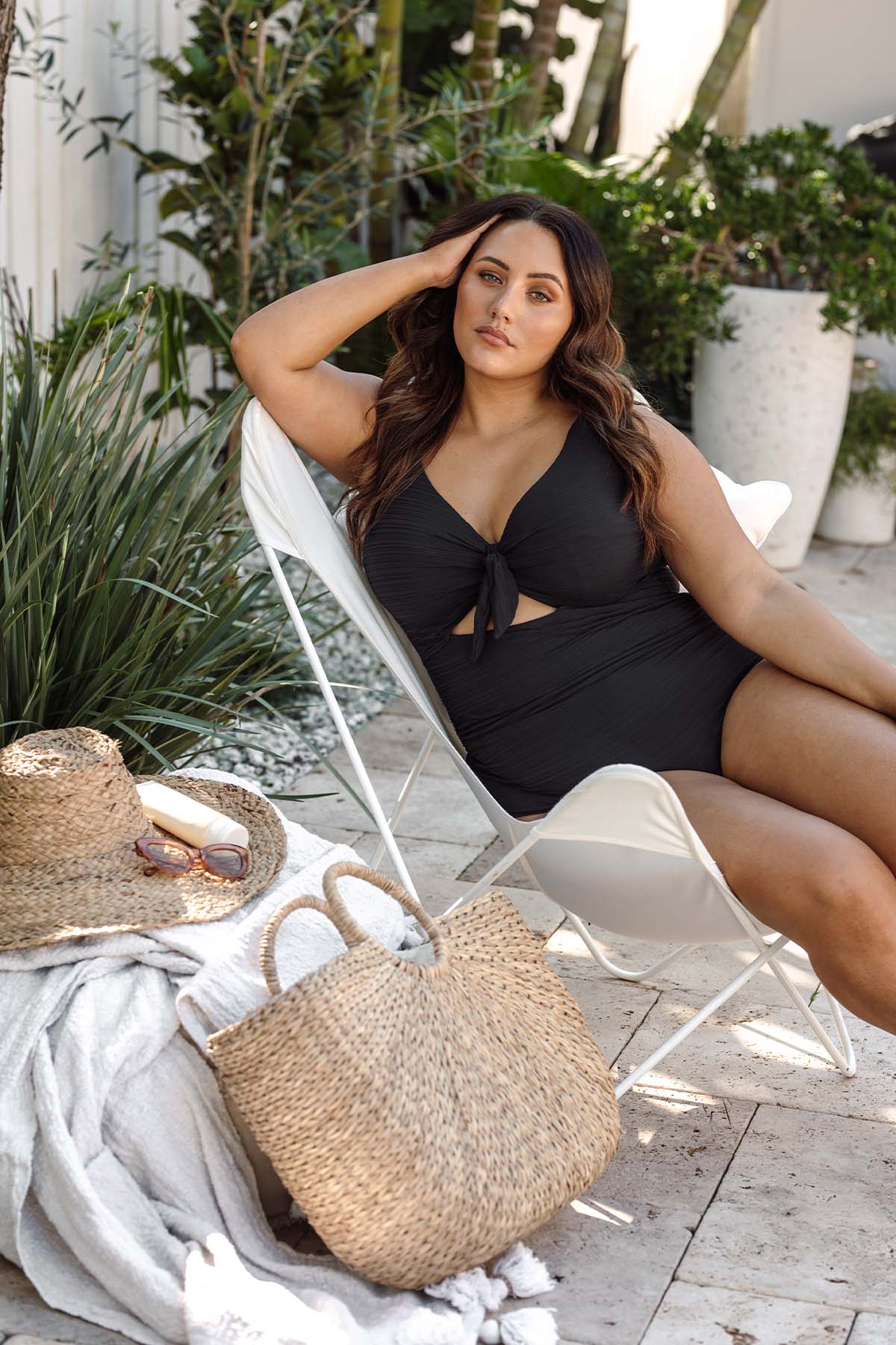 Artesands fits your curves. Make a curve statement in our Artesands Cezanne plus size one piece, the most flattering swimsuit shape EVER. Our Cezanne one piece has a mock knot tie at the front that covers a full internal cup support system. Our Cezanne shape is an underwire style with full foam cups that create great bust shape for a D cup, DD cup and E cup. But it is the peep hole on this style that creates the most amazing figure flattering illusion. The peephole creates a body enhancing hourglass shape and when paired back with our full body 360 degree powermesh and our front panel ruching this style is truly flattering. Cezanne has good moderate bottom coverage.
