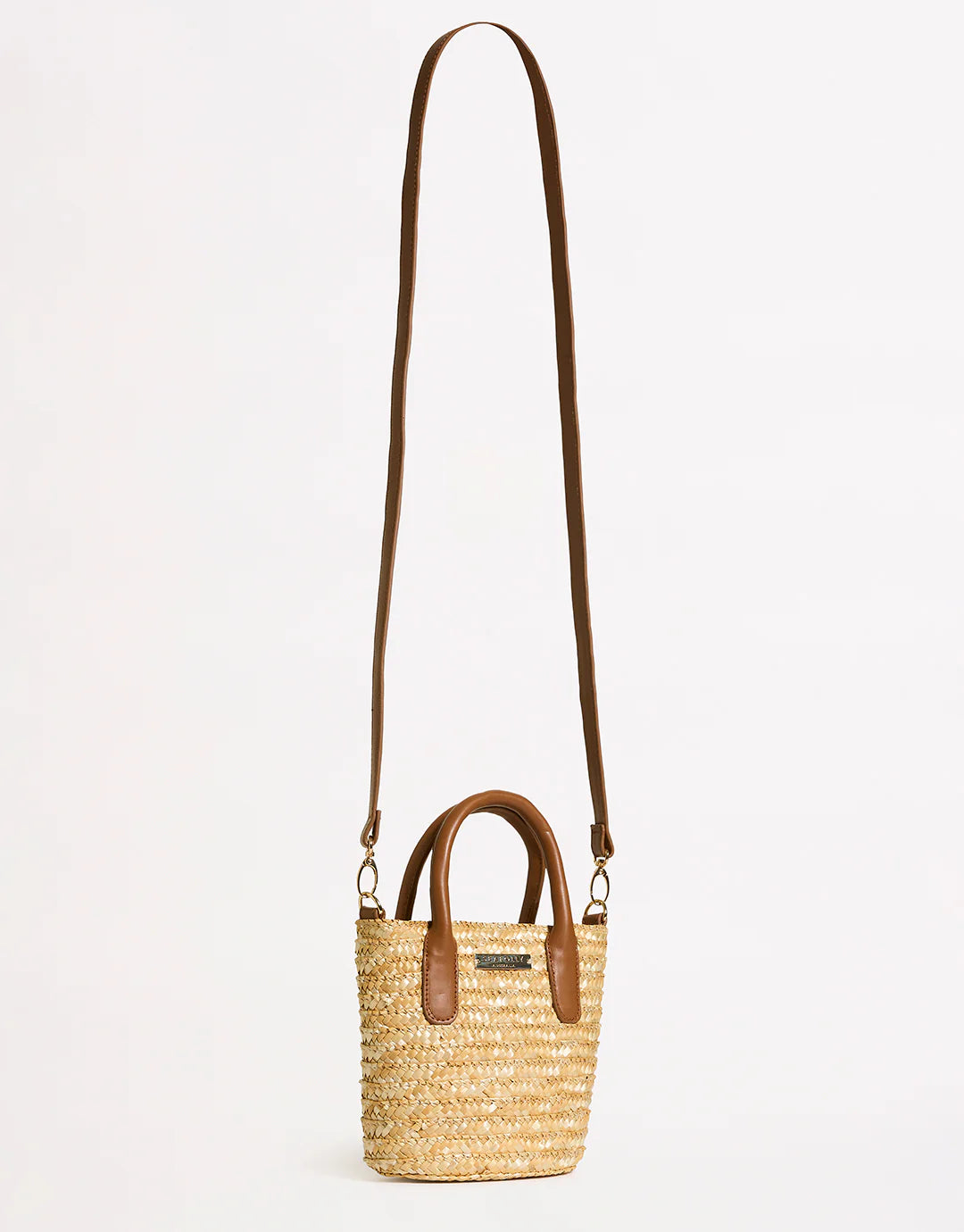The Micro Tote Bag from Seafolly is a lovely black straw bag with a faux leather, removable shoulder strap, shorter straps and magnetic clip closure. Perfect for holiday sightseeing or visits to the beach bar.